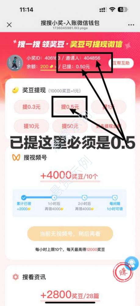 邀请人是:404856,提现0.5元,要显示已提0.5元才算完成