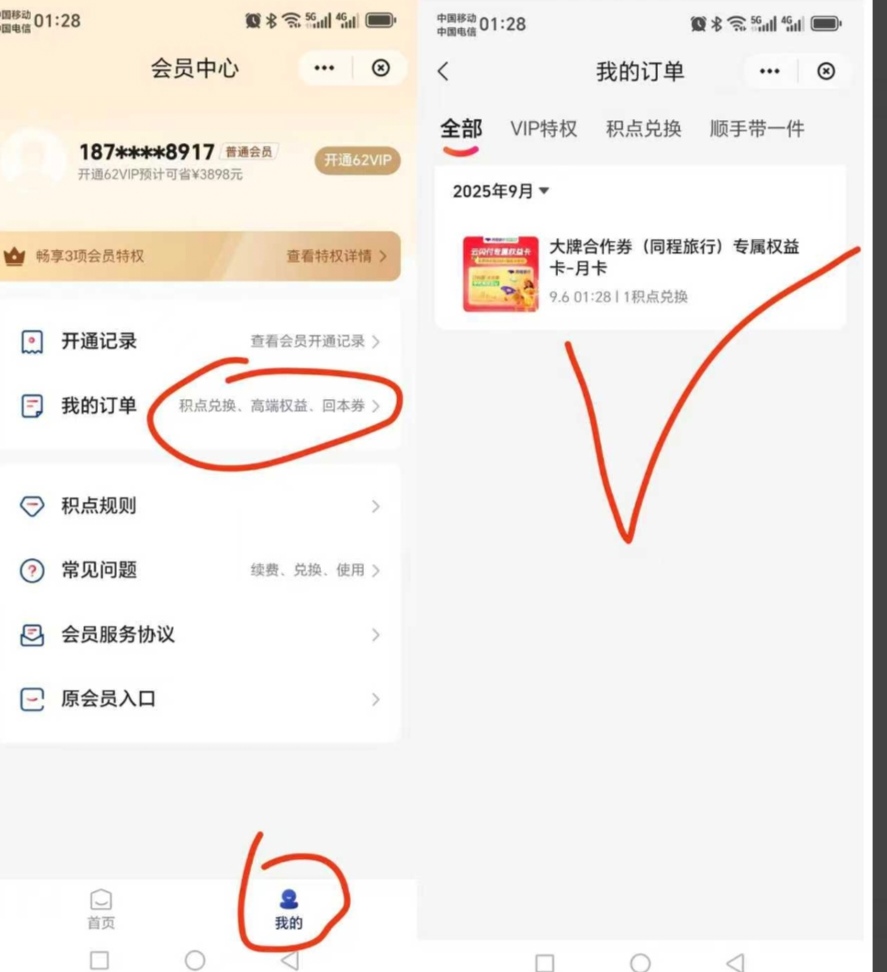 兑换成功后,会员中心我的页面 我的订单点开 兑换即可截图 《只收接单后兑换的》
