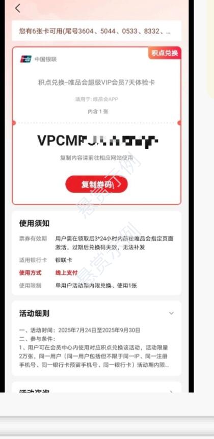 下拉找到唯品会超级VIP会员7天, 兑换